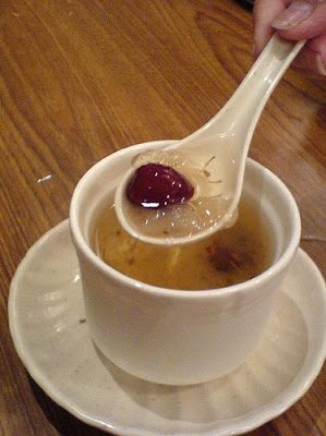 So, now that these frogs with poor jumping skills have helped provide yet another nail in the coffin of the boiled frog story maybe James Fallows can celebrate with some yummy frog oviduct fat dessert (photo from here):